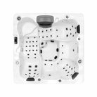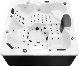 This mid-range spa provides everything you need for having a great time: 2 ergonomically formed lounge seats with built-in armrests, comfort headrests, a corner massage set with powerful back and shoulder massage, waterfall and underwater lighting.