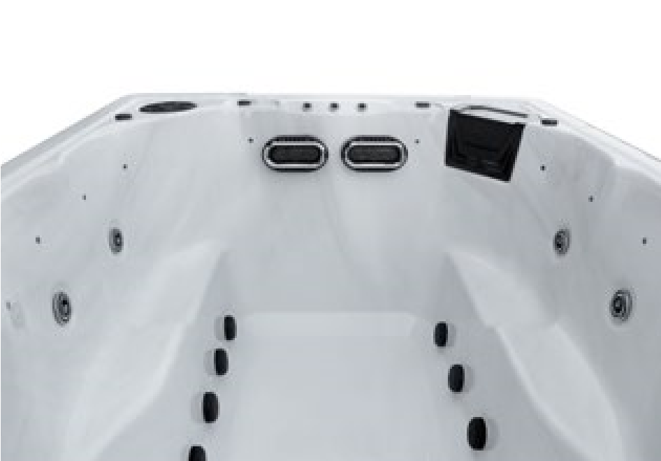 At only eleven feet the AQ Flo 11 Party Pool brings all the benefits of a pool into any backyard. A full-body lounger and open swim zone brings year-round enjoyment to any backyard.
